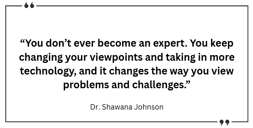 When discussing long-term career success, all four leaders emphasized qualities that have nothing to do with specific tools. Dr. Shawana Johnson, with decades of experience across government, commercial, and defense geospatial sectors, put it plainly: “You don’t ever become an expert. You keep changing your viewpoints and taking in more technology, and it changes the way you view problems and challenges.”