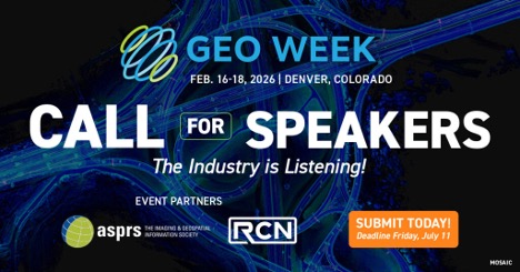 PORTLAND, MAINE – USA, July 7, 2025 – Organizers of Geo Week have announced the final few days of their Call for Speakers, which seeks professionals to share expert insights and case studies on unique problem-solving and cutting-edge projects using lidar, imagery, reality capture, photogrammetry and other geospatial technologies. Geo Week will occur February 16-18, 2026, in Denver, Colorado, at the Colorado Convention Center.