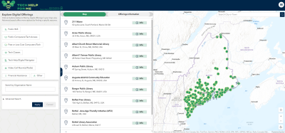 Along with this infrastructure and access mapping program that forms the backbone of providing direct broadband access to households throughout the state, Perez led a separate effort from MCA called Tech Help for ME. Also leaning heavily on GIS tools, this platform allows residents throughout the state to easily and intuitively find places where they can access technology based on their location. The tool includes the ability to search for offerings, including public WiFi, public computers, tech classes, financial assistance, and more. While the BEAD program’s project leaned heavily on geospatial expertise, Tech Help for ME was assisted in many ways by putting less focus on robust geospatial offerings to make it user-friendly.