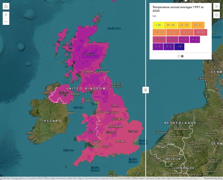 This project is the latest result of collaboration between the Met Office and Esri UK, a relationship which started over 20 years ago. Esri UK provides the GIS technology on which all of the available data is presented, with the company having plenty of experience in building these powerful visualization tools to easily consume complex datasets.