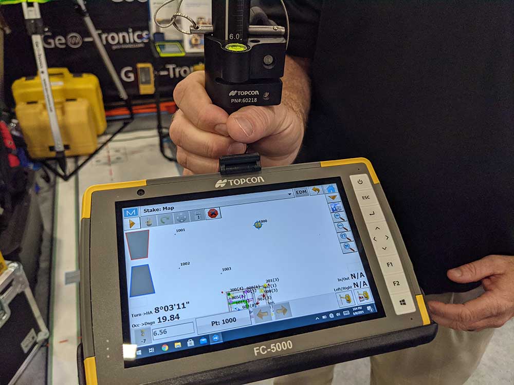 Deaton provided attends with a quick demo of what that can look like with a Topcon LN-150 and FC-5000 tablet. He quickly and expertly showed how simple it was to utilize the precise 3D positioning by setting up from across the aisle of the booth. Moving with the tablet provided real-time positioning, providing a sense of how positioning needs across a variety of projects can be met with little a single one-button, self-leveling setup.